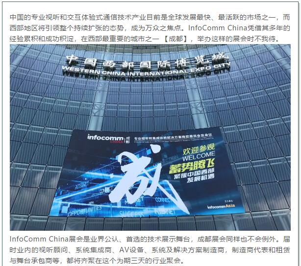 展會(huì)預(yù)告 | 相約蓉城 - 成都InfoComm China展會(huì)