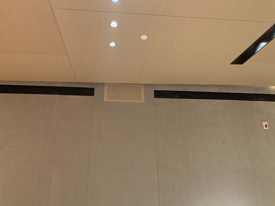 重慶中瑞產(chǎn)業(yè)園會(huì)議室音響擴(kuò)聲系統(tǒng)及視頻顯示系統(tǒng)由我公司負(fù)責(zé)設(shè)計(jì)、施工及維護(hù)。該會(huì)議室選用美國(guó)bose音響Bose F1 Model 812 可調(diào)指向性陣列揚(yáng)聲器作為前置主擴(kuò)聲音箱,BoseRoomMatchRMU208 多用途揚(yáng)聲器作為后場(chǎng)補(bǔ)聲音箱。功放選用BosePowerMatchPM8500可配置專業(yè)功率放大器,處理選用Bose?ControlSpace?ESP-880處理器,傳聲器選用西班牙televic手拉手會(huì)議系統(tǒng)及AKG無(wú)線話筒,調(diào)音臺(tái)選用英國(guó)Soundcraft聲藝Signature 16調(diào)音臺(tái)。顯示屏選用P2.5室內(nèi)全彩顯示屏。我公司為精信中心會(huì)議室擴(kuò)聲系統(tǒng)提供音樂(lè)會(huì)品質(zhì)的聲音和高水平的可擴(kuò)展性和可配置性。音箱全采用隱藏式安裝。以下是現(xiàn)場(chǎng)施工照片。