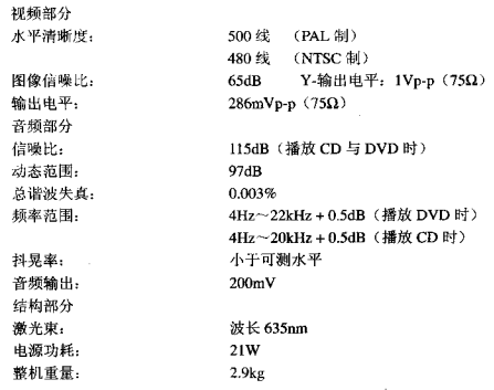 2)DVD機(jī)的主要技術(shù)指標(biāo),DVD機(jī)采用較高級(jí)別的數(shù)據(jù)壓縮技術(shù),各項(xiàng)技術(shù)指標(biāo)均超過其他家用av信號(hào)源,以先鋒DV-505數(shù)字視盤機(jī)為例,該機(jī)屬第二代普及型機(jī)種,但其各項(xiàng)技術(shù)指標(biāo)已很可觀,下面是該機(jī)的主要技術(shù)指標(biāo)。